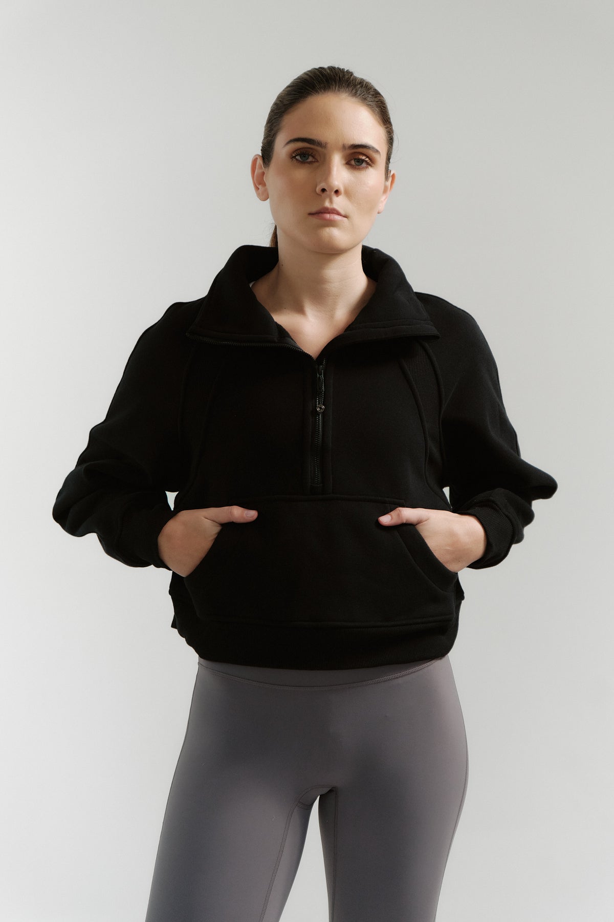 A ribbed insert detail adds structure and style, while the half zip and clean finish keep the look minimal and versatile. With its plush interior and flattering fit, this fleece delivers comfort that feels elevated.
